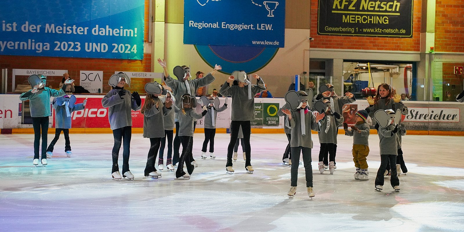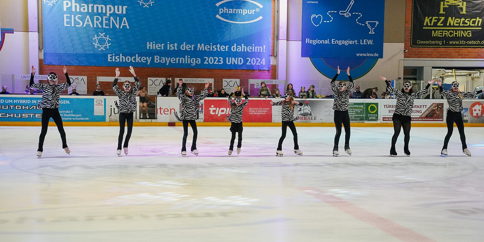 ... das war in dieser Saison das Motto des Eiskunstlauf-Schaulaufens in der Pharmpur EISARENA. Insgesamt mehr als 100 Läufer zeigten das Alltagsleben der Tiere, friedliches Grasen, Partnerwerbung, Rumalbern von Affen, ein Lemurenfest bis hin zur Jagd der Raubtiere. Auch eine Zebraherde kam in Todesgefahr, bis ein Engel erschien und sie vor den Raubtieren rettete. Weitere Engel verbreiten die Botschaft auf der ganzen Erde, und von überallher kommen weitere Tiere, um gemeinsam das Weihnachtsfest zu feiern.